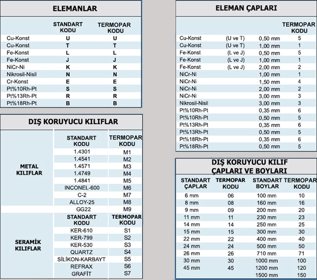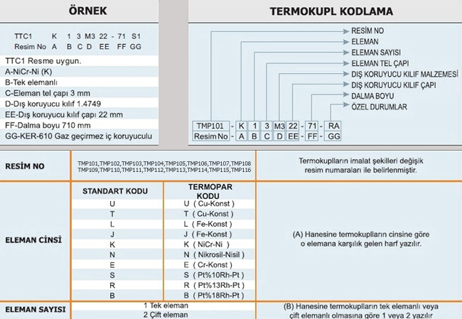 | TERMOPAR | TERMOKUPL KODLAMA BİLGİLERİ |